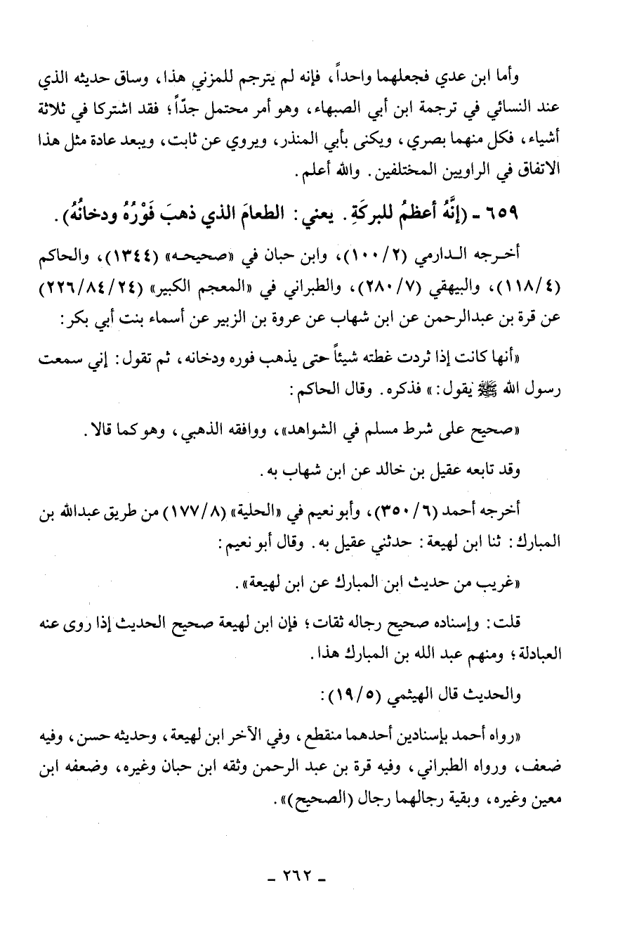 659 - " إنه أعظم للبركة. يعني الطعام الذي ذهب فوره ودخانه ".