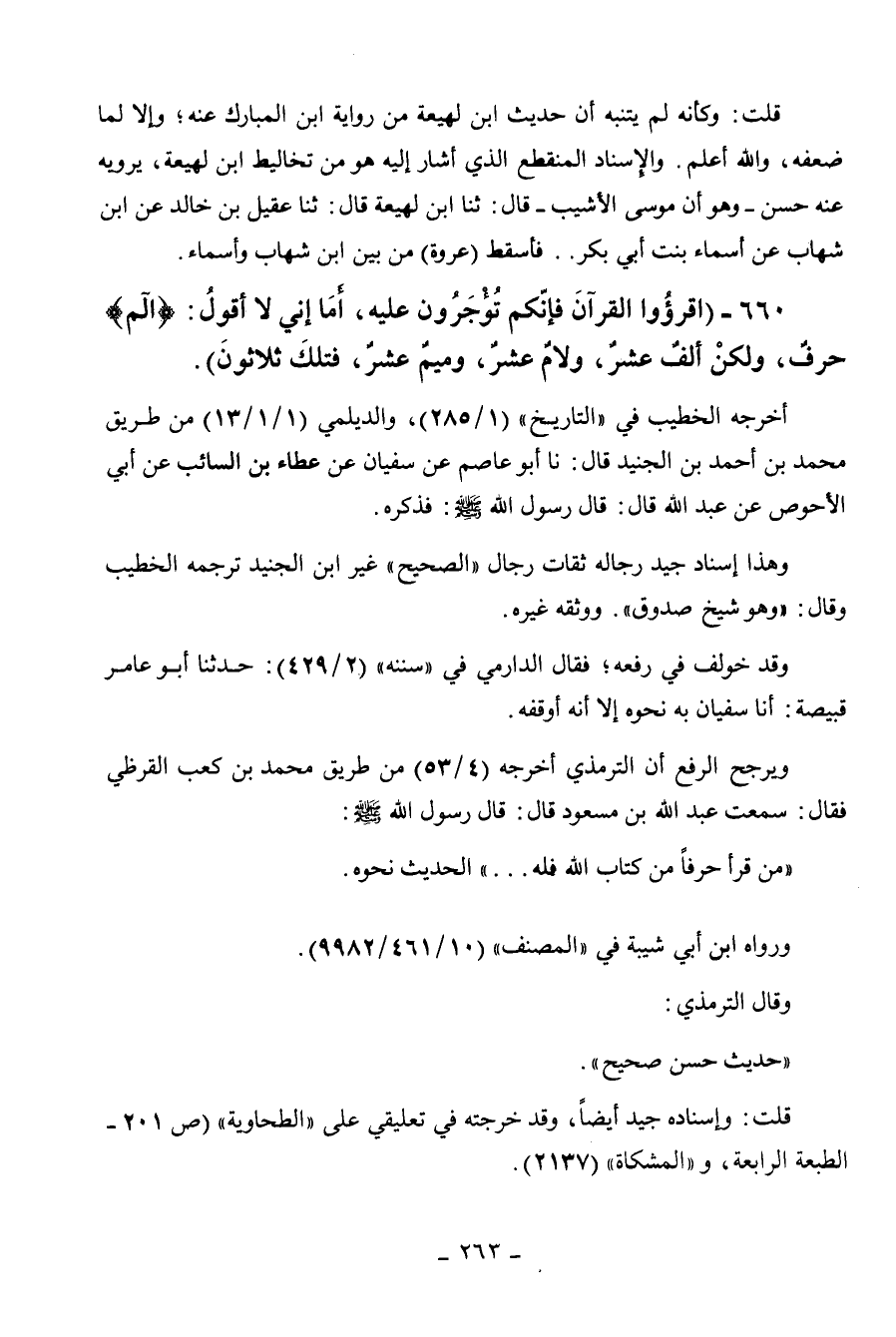 660 - " اقرءوا القرآن، فإنكم تؤجرون عليه أما إني لا أقول: * (ألم) * حرف ولكن
