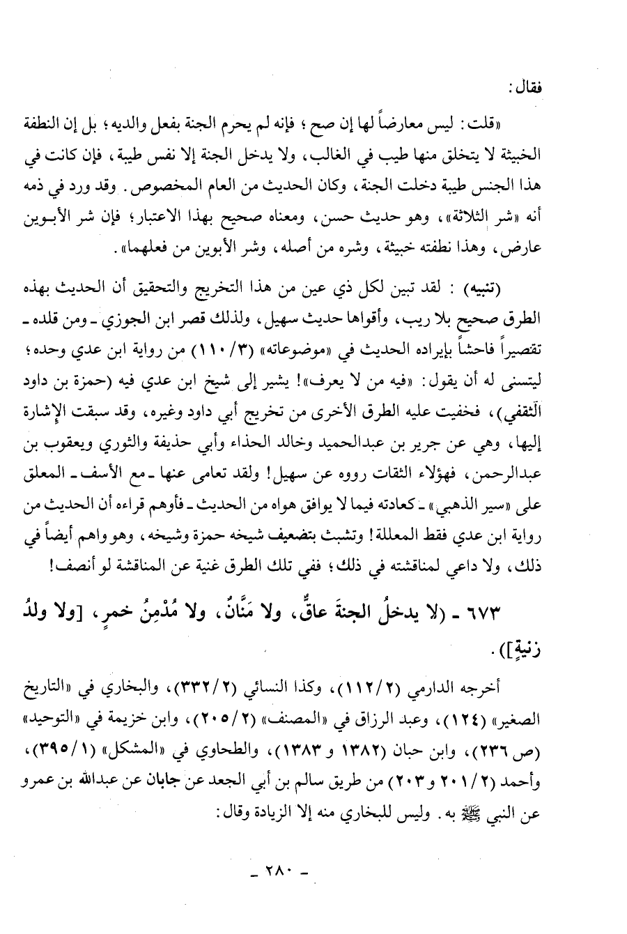 673 - " لا يدخل الجنة عاق ولا منان ولا مدمن خمر ولا ولد زنية ".