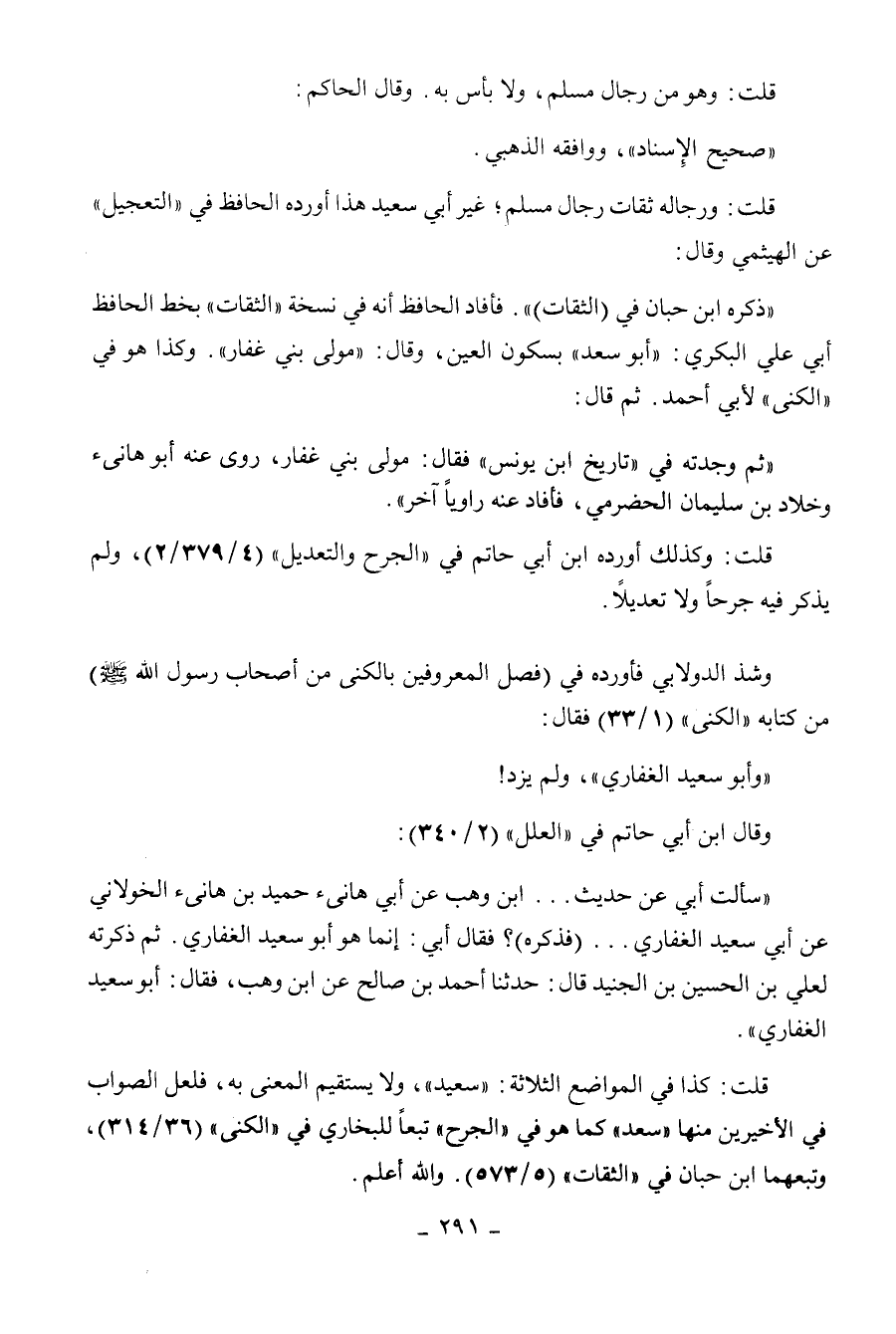 " وأبو سعيد الغفاري ". ولم يزد! وقال ابن أبي حاتم في " العلل " (2 /