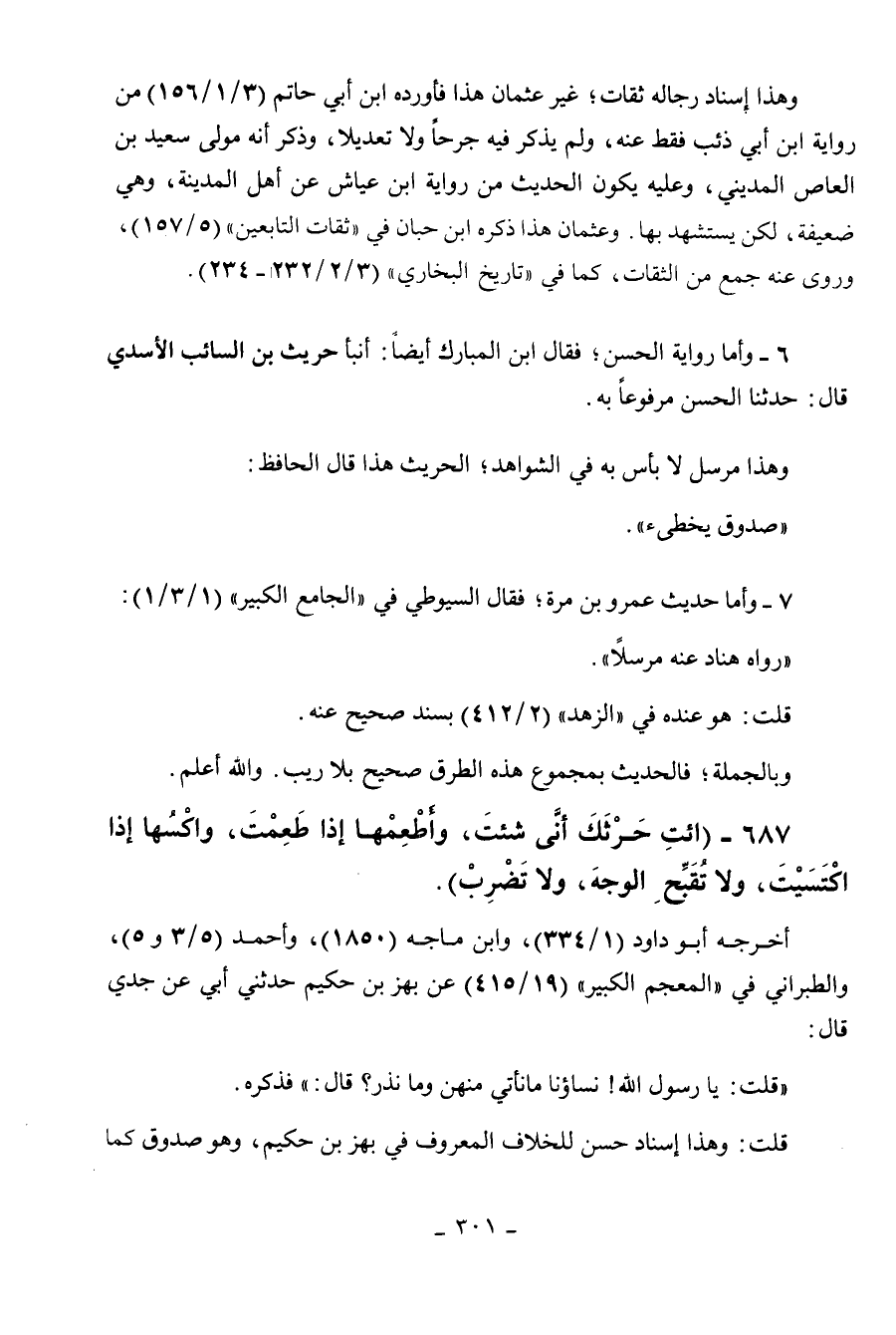 قلت: وهذا إسناد حسن للخلاف المعروف في بهز بن حكيم، وهو صدوق كما