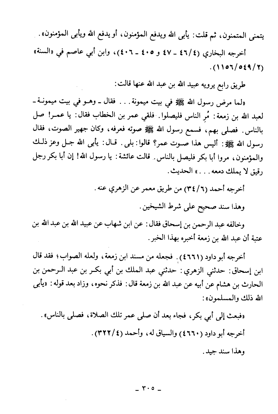 طريق رابع. يرويه عبيد الله بن عبد الله عنها قالت: " لما مرض رسول الله صلى