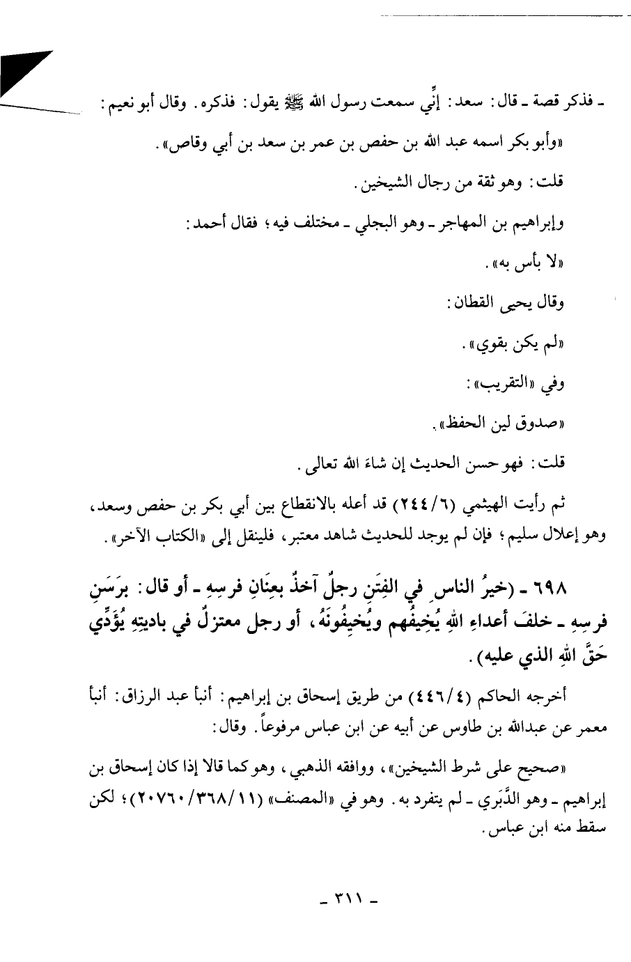 698 - " خير الناس في الفتن رجل آخذ بعنان فرسه أو قال برسن فرسه خلف أعداء الله