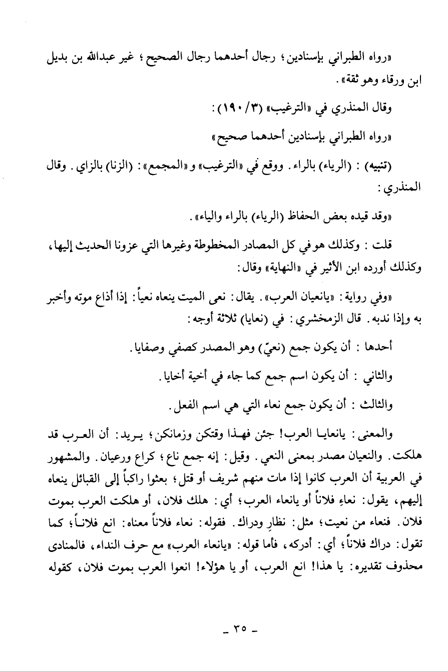 أورده ابن الأثير في " النهاية " وقال: " وفي رواية: " يا نعيان العرب ".