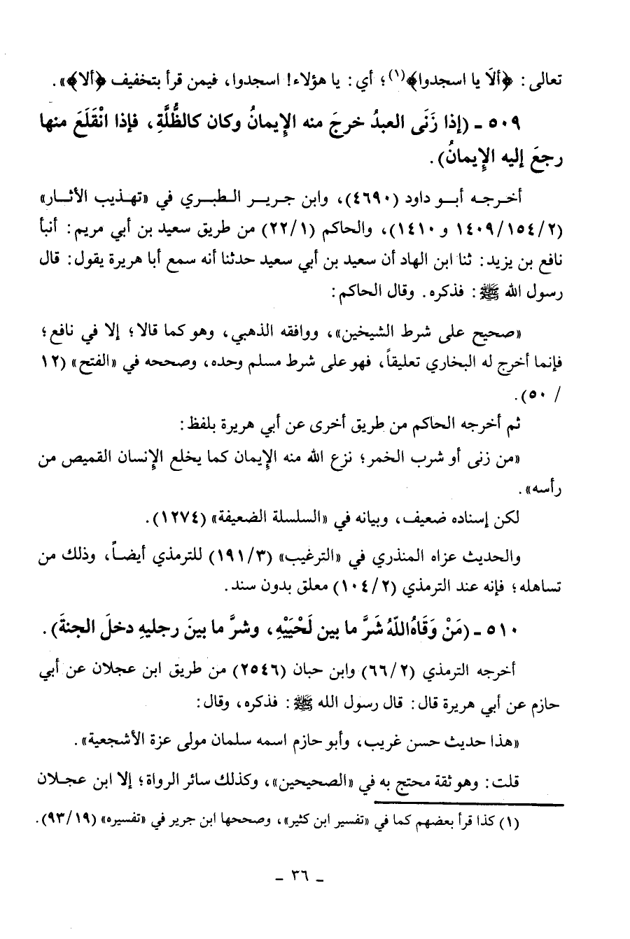 509 - " إذا زنى العبد خرج منه الإيمان وكان كالظلة، فإذا انقلع منها رجع إليه