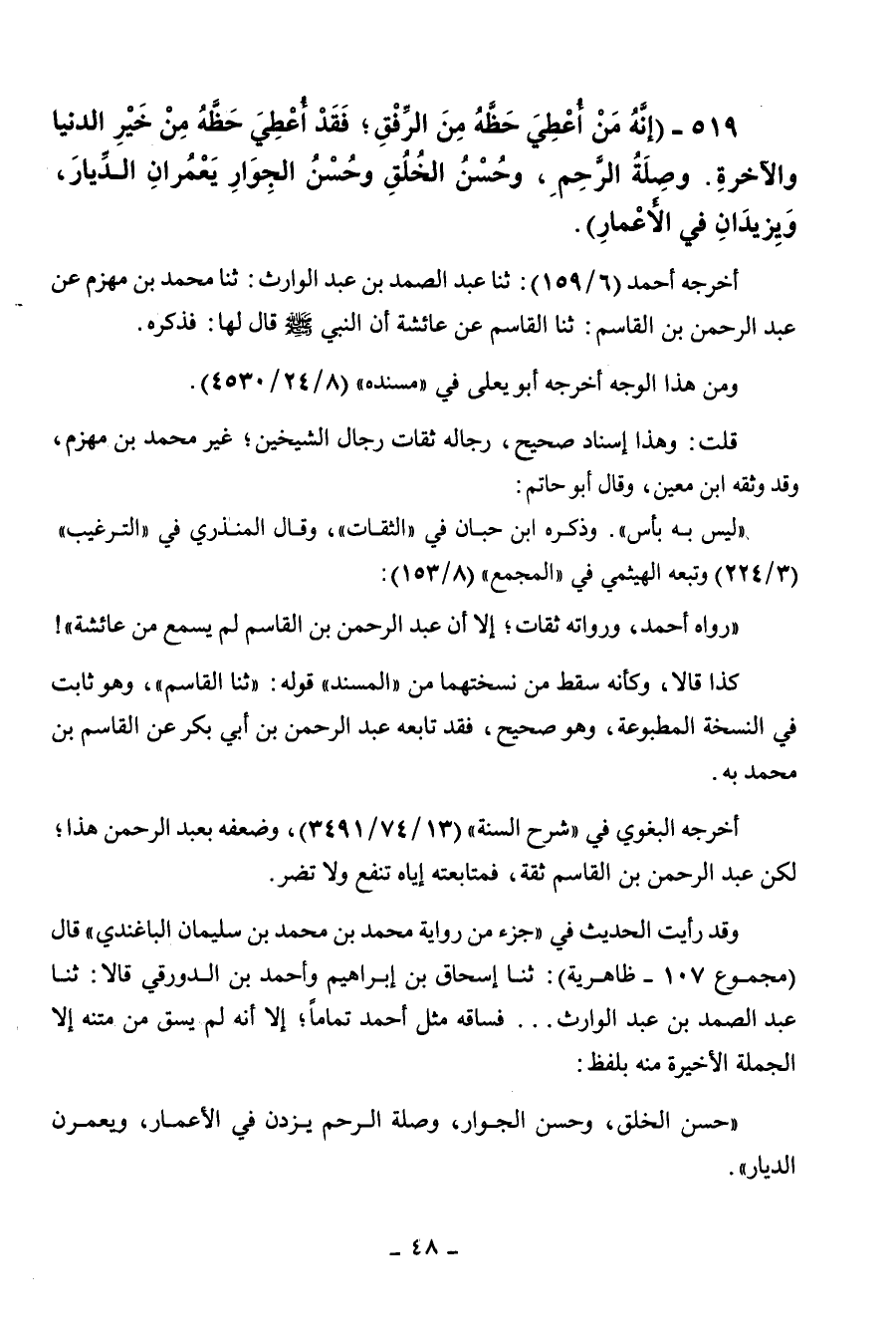 519 - " إنه من أعطي حظه من الرفق، فقد أعطي حظه من خير الدنيا والآخرة وصلة الرحم