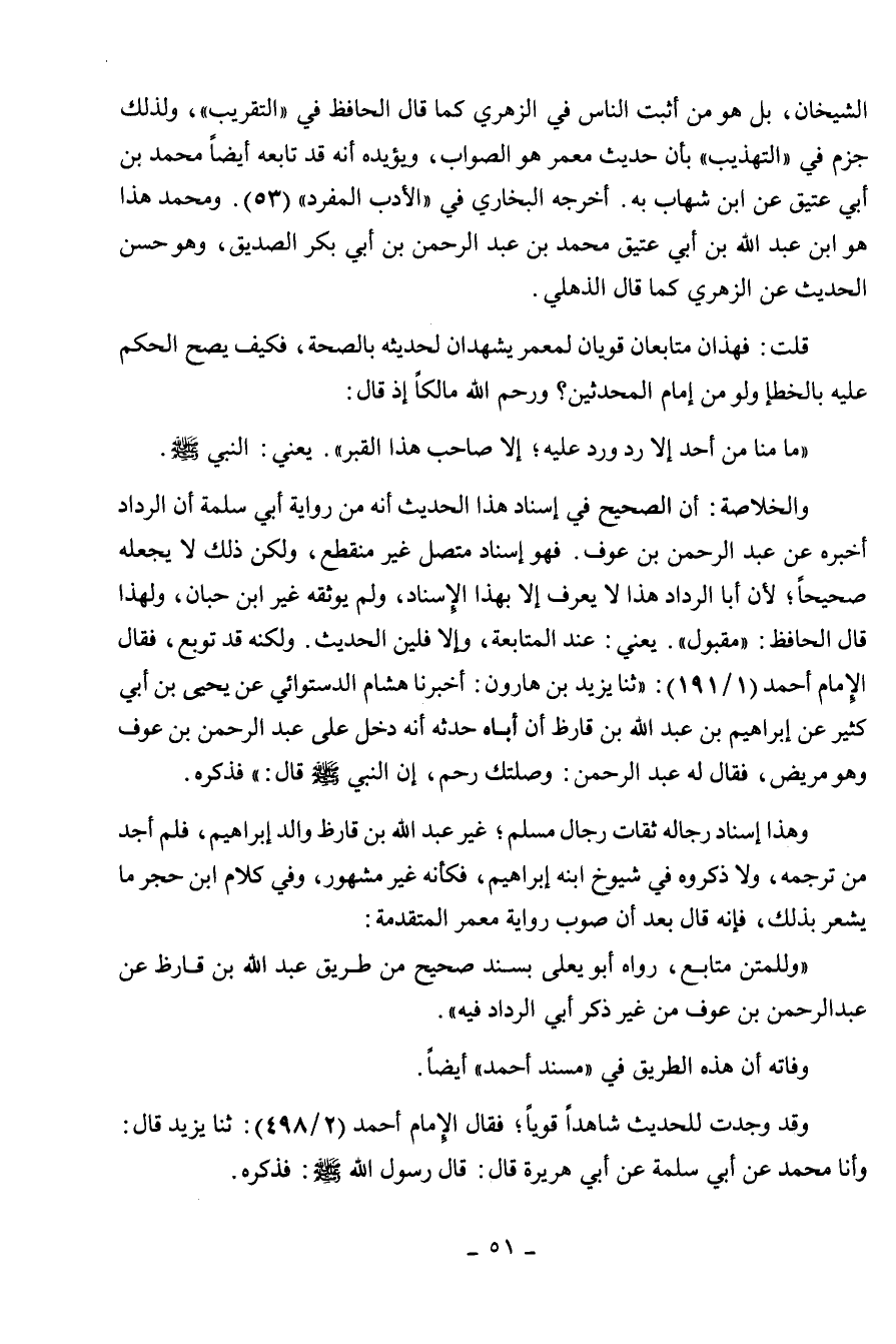 رد ورد عليه إلا صاحب هذا القبر ". يعني النبي صلى الله عليه وسلم.
