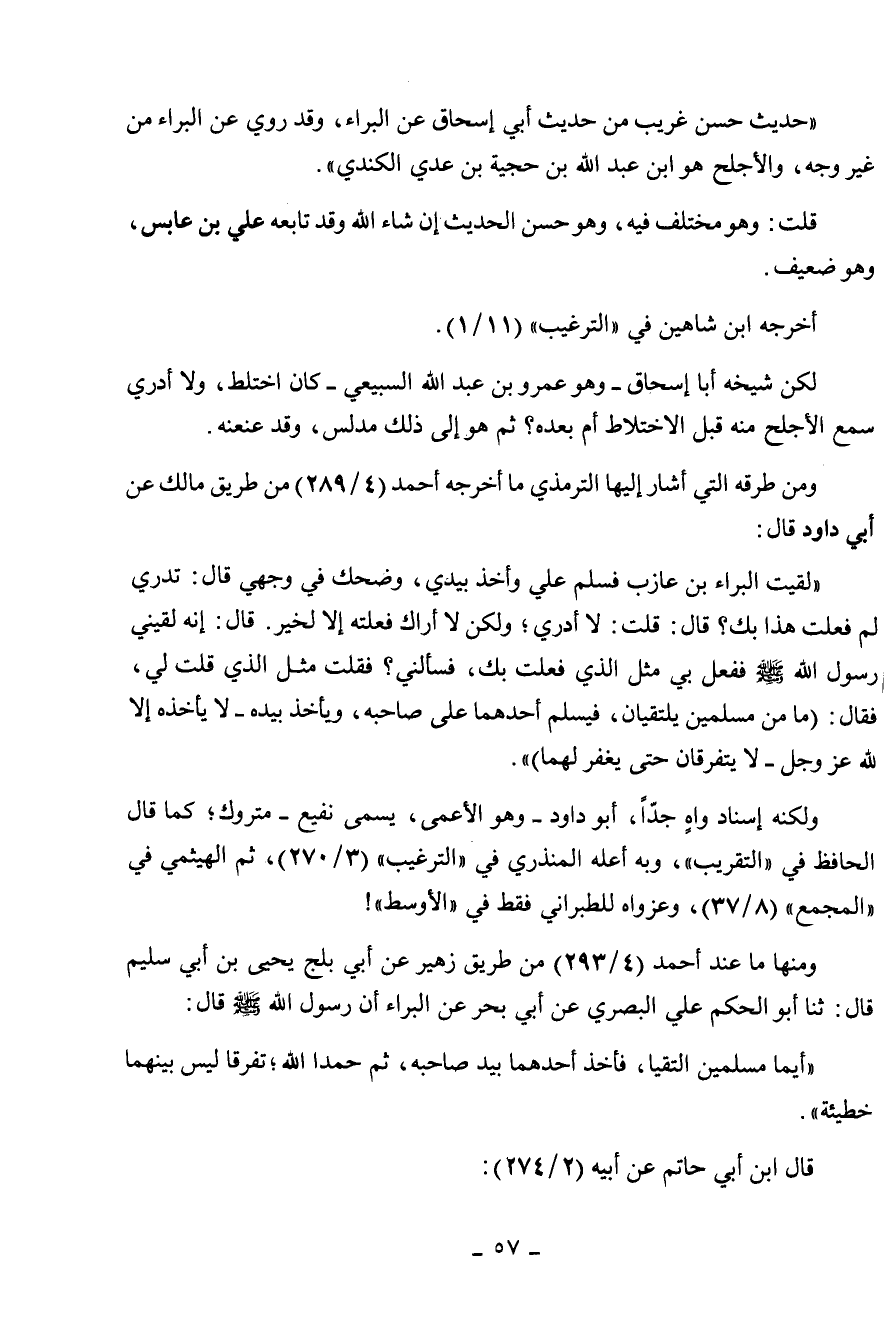 أبي داود قال: " لقيت البراء بن عازب فسلم علي وأخذ بيدي وضحك في وجهي قال: