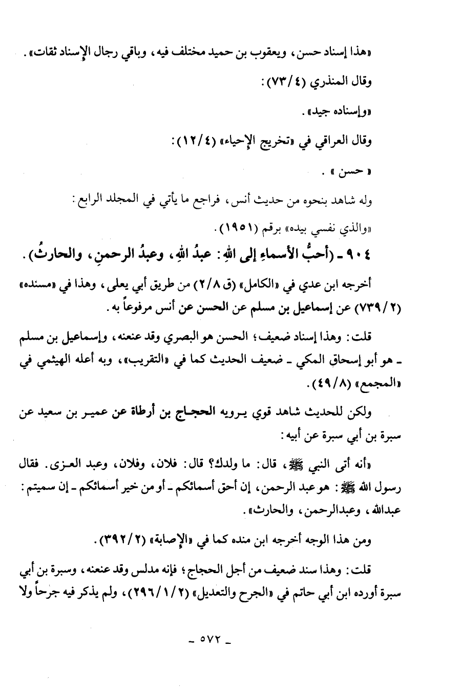 904 - " أحب الأسماء إلى الله عبد الله وعبد الرحمن والحارث ".