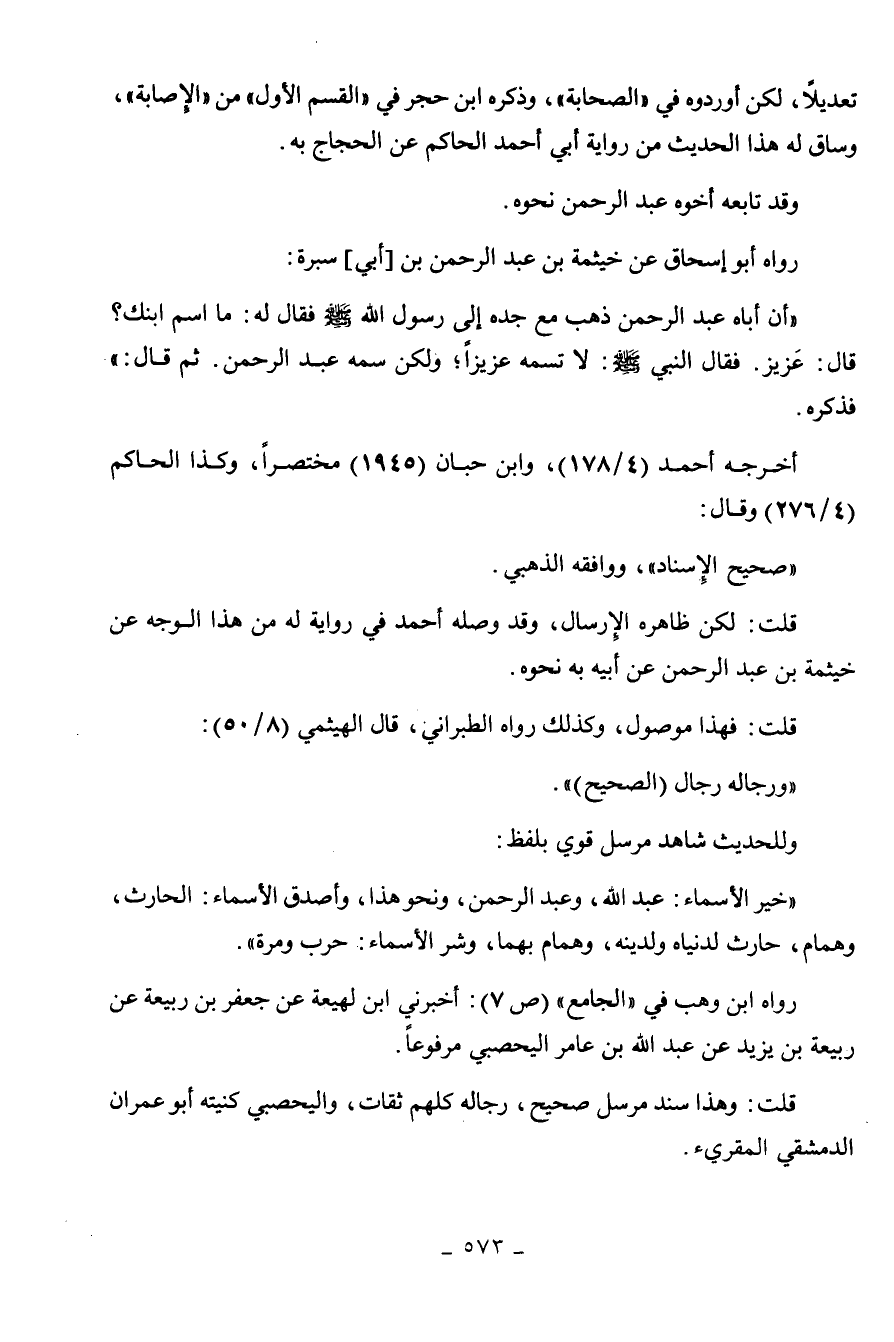 " ورجاله رجال الصحيح ". وللحديث شاهد مرسل قوي بلفظ: " خير الأسماء عبد