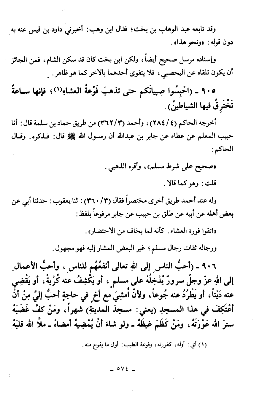 905 - " احبسوا صبيانكم حتى تذهب فوعة العشاء، فإنها ساعة تخترق فيها الشياطين ".