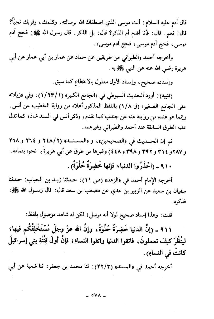 910 - " احذروا الدنيا، فإنها خضرة حلوة ".