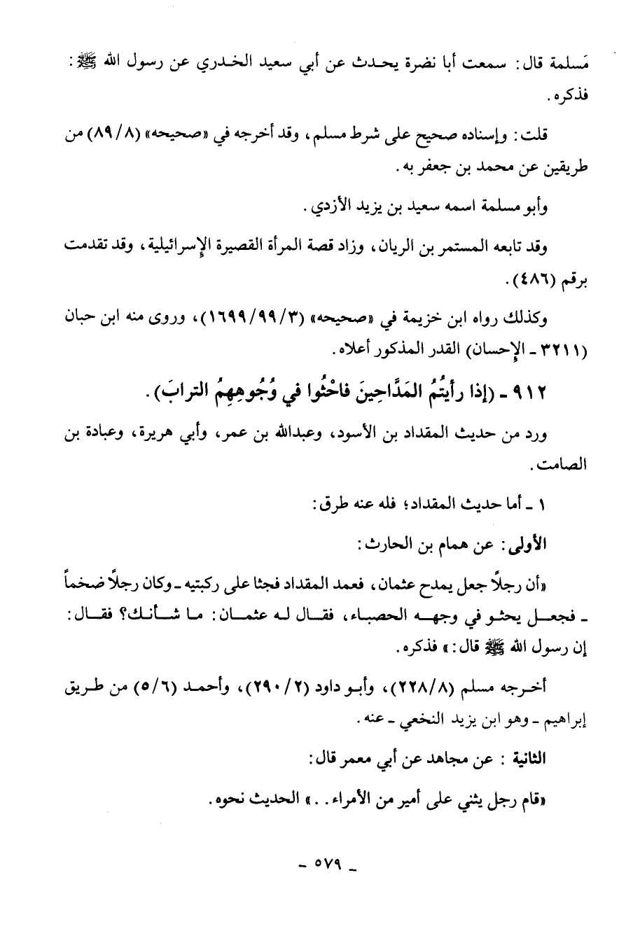 912 - " إذا رأيتم المداحين، فاحثوا في وجوههم التراب ".