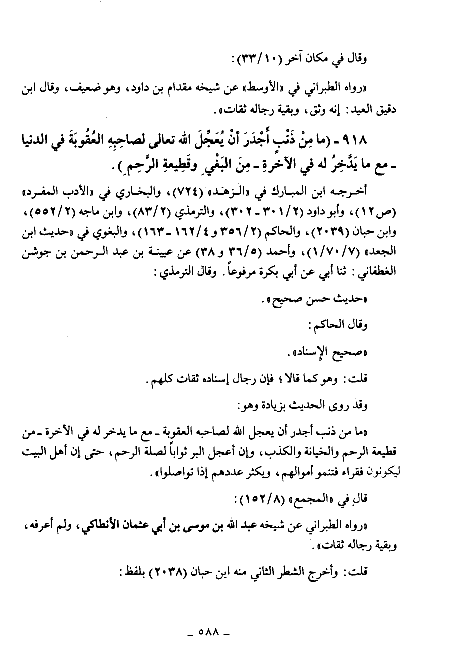 918 - " ما من ذنب أجدر أن يعجل الله تعالى لصحابه العقوبة في الدنيا مع ما يدخر له