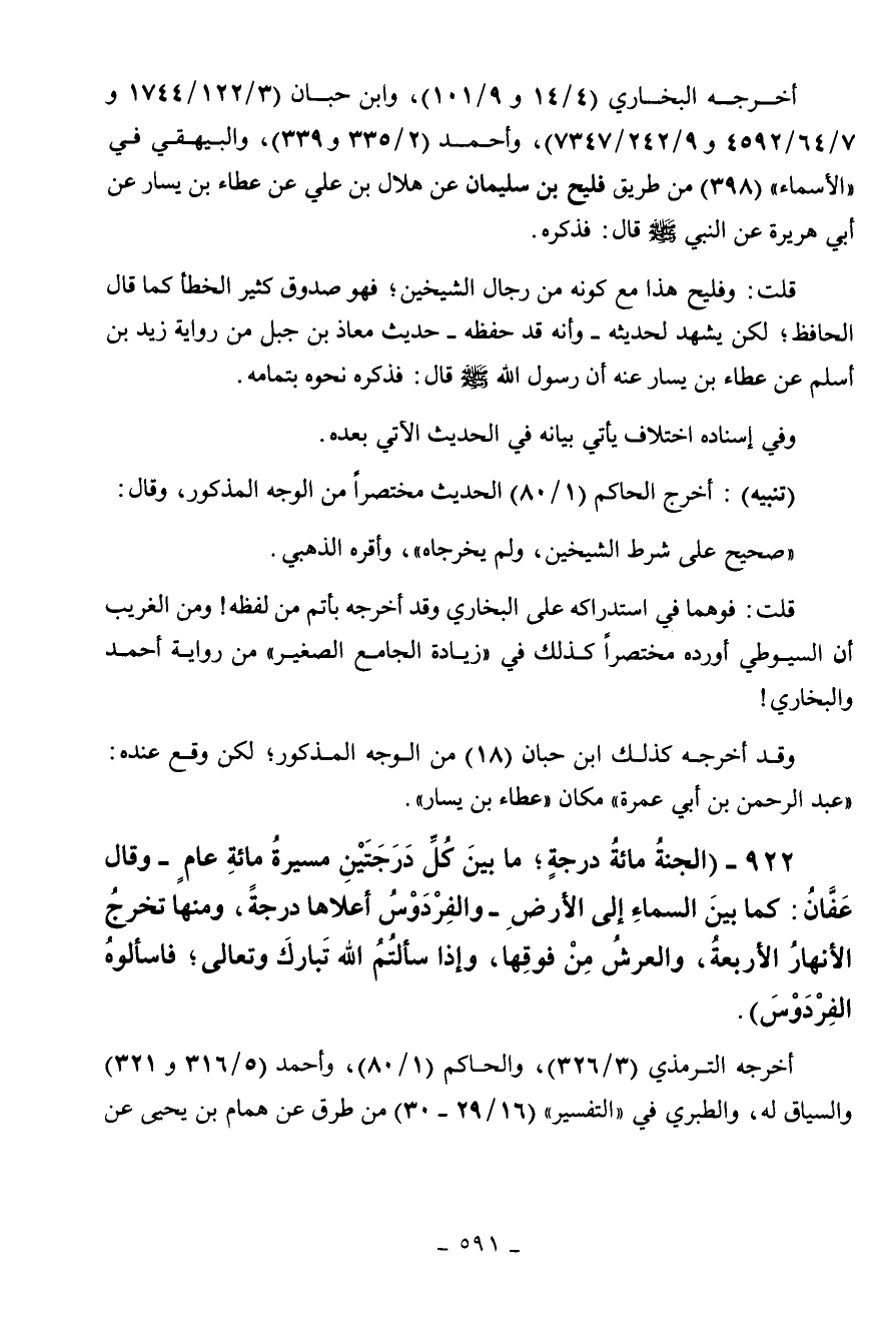 922 - " الجنة مائة درجة ما بين كل درجتين مسيرة مائة عام - وقال عفان: كما بين