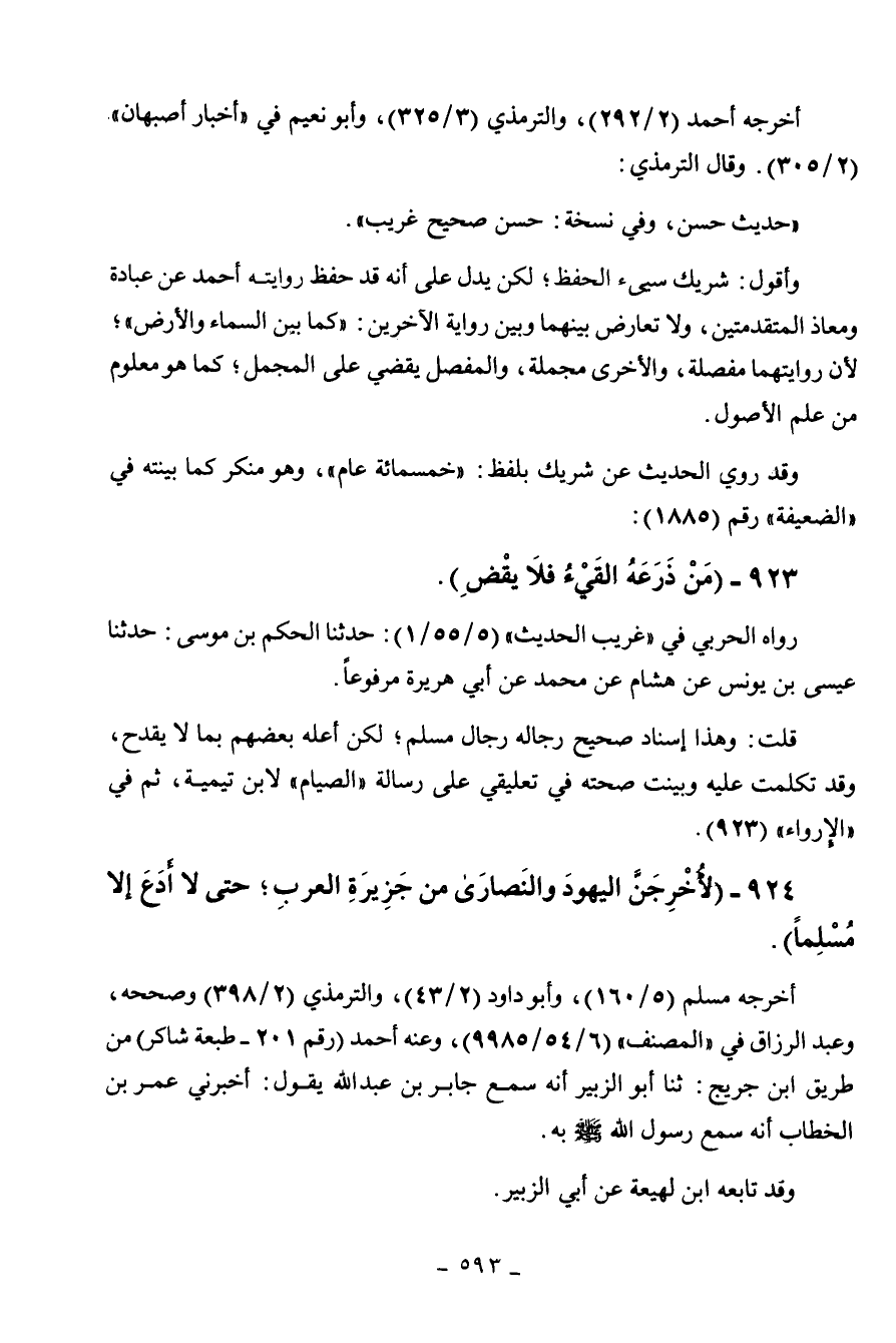 924 - " لأخرجن اليهود والنصارى من جزيرة العرب حتى لا أدع إلا مسلما ".