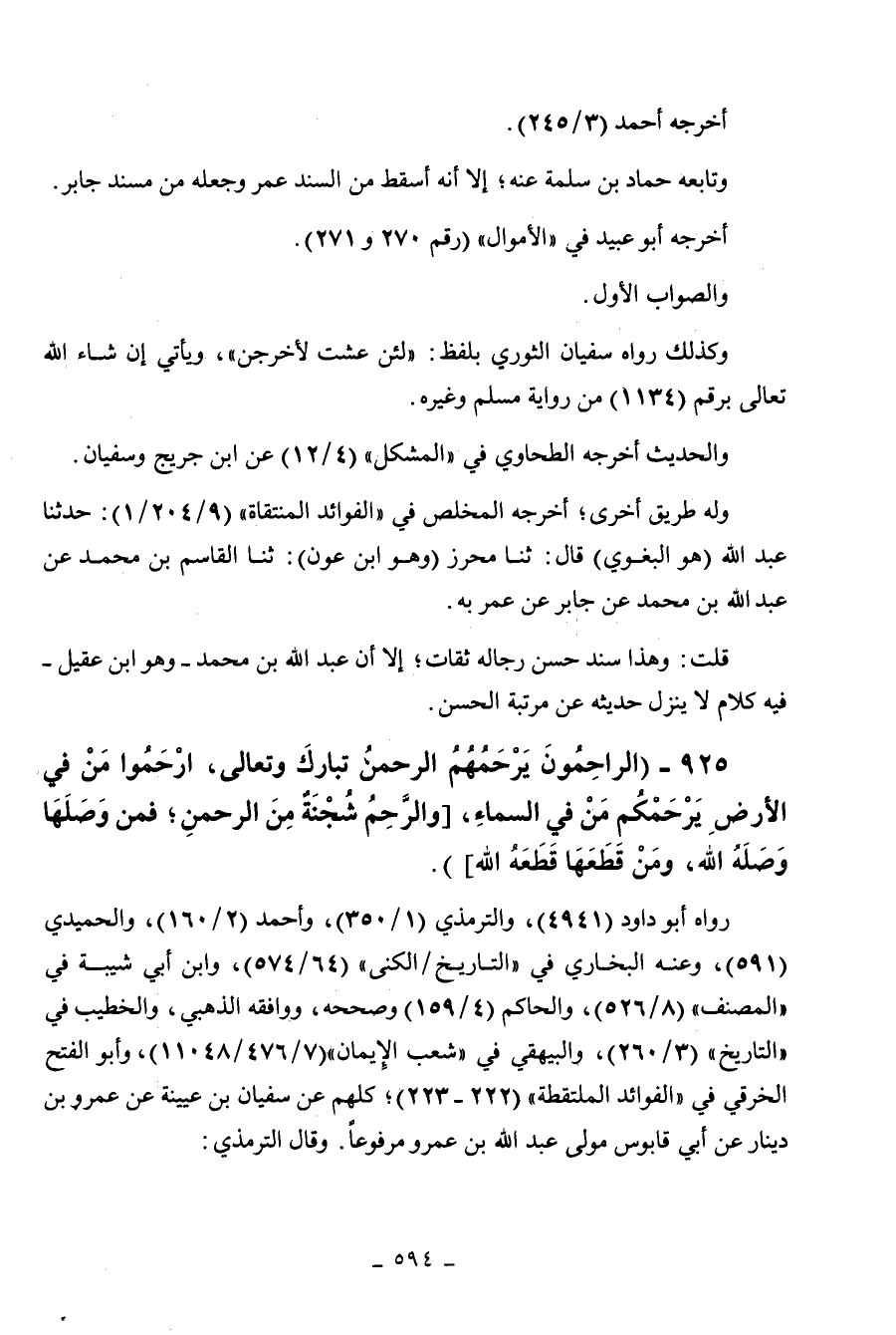 925 - " الراحمون يرحمهم الرحمن تبارك وتعالى، ارحموا من في الأرض يرحمكم من في