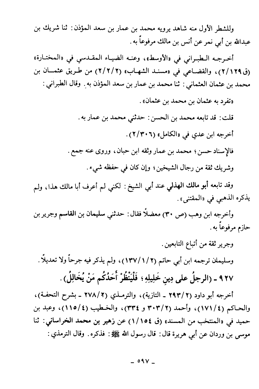 927 - " الرجل على دين خليله، فلينظر أحدكم من يخالل ".