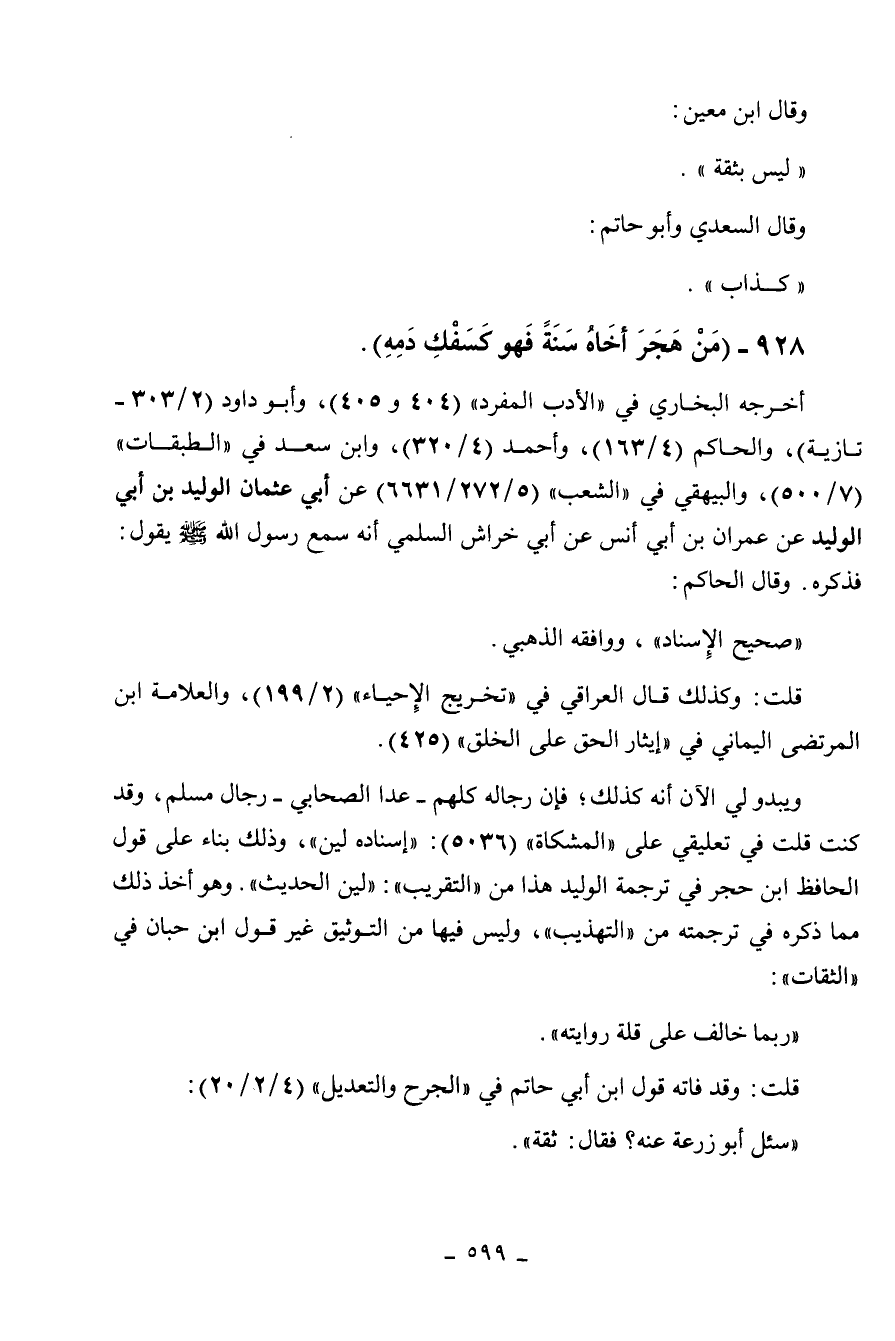 928 - " من هجر أخاه سنة، فهو كسفك دمه ".