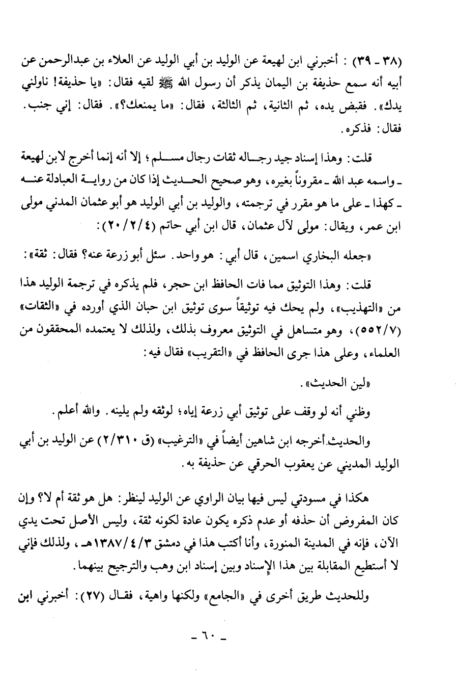 (38 - 39) أخبرني ابن لهيعة عن الوليد ابن أبي الوليد عن العلاء بن عبد