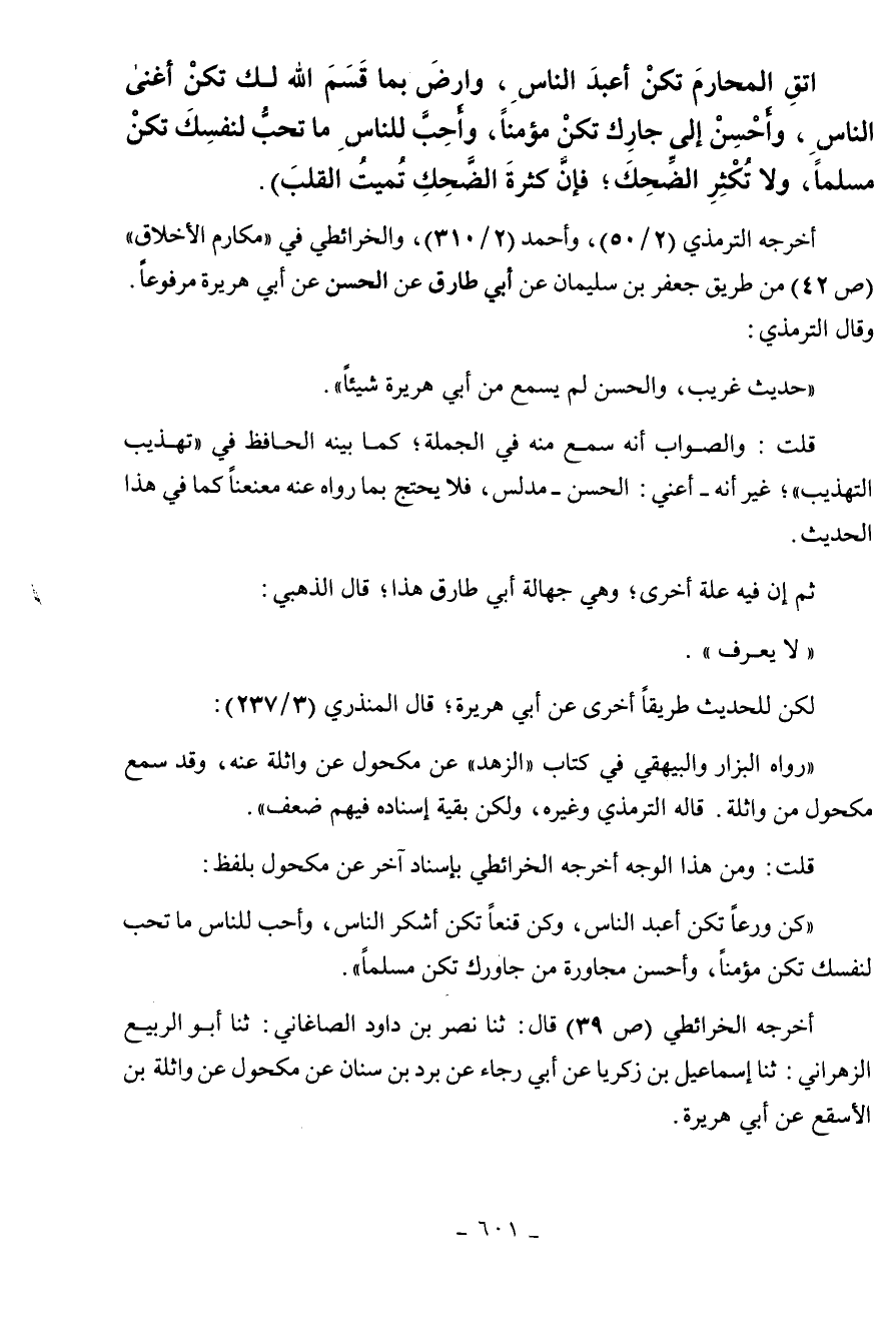 قلت: ومن هذا الوجه أخرجه الخرائطي بإسناد آخر عن مكحول بلفظ: (كن ورعا تكن