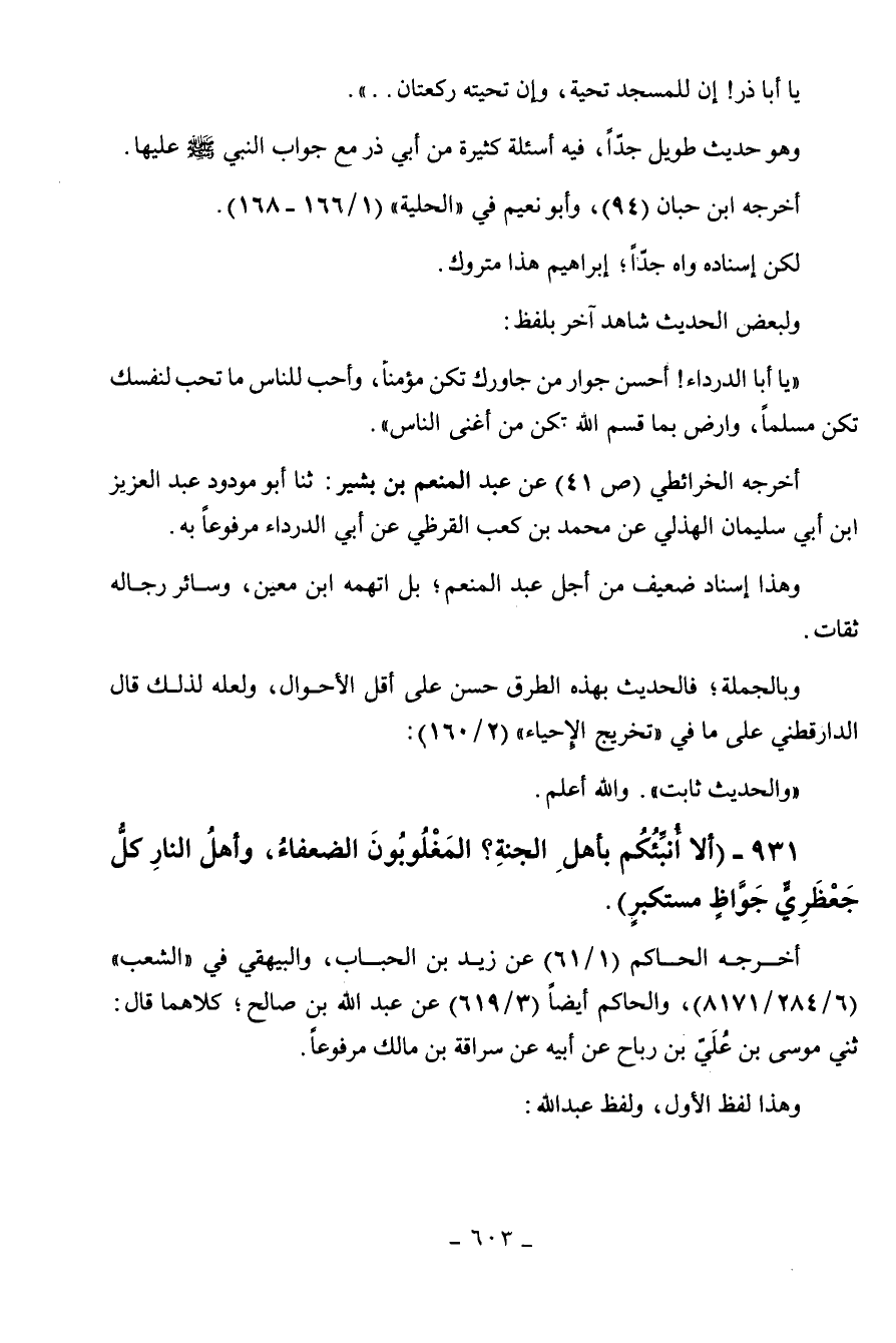 931 - " ألا أنبئكم بأهل الجنة؟ المغلوبون الضعفاء وأهل النار كل جعظري جواظ مستكبر