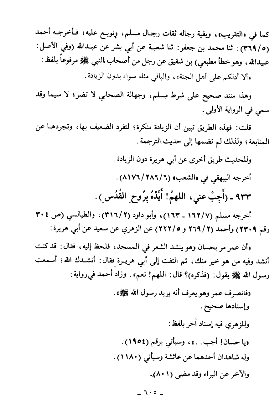 وإسنادها صحيح. وللزهري فيه إسناد آخر بلفظ: " يا حسان أجب ... " وسيأتي
