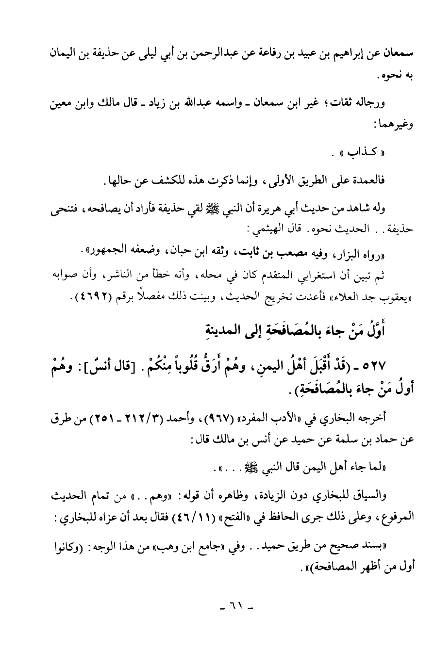 ابن وهب من هذا الوجه: وكانوا أول من أظهر المصافحة ".