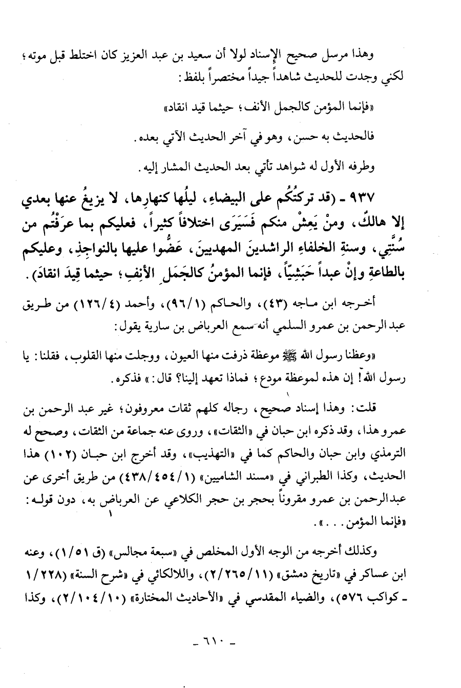 العرباض به، دون قوله: " فإنما المؤمن ... ". وكذلك أخرجه من الوجه الأول