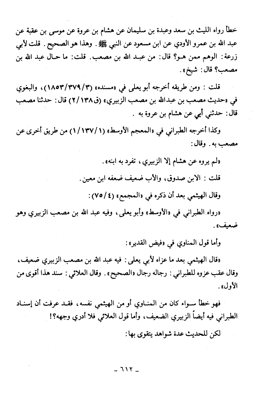 138 / 2) قال: حدثنا مصعب قال: حدثني أبي عن هشام بن عروة ... به " وكذا