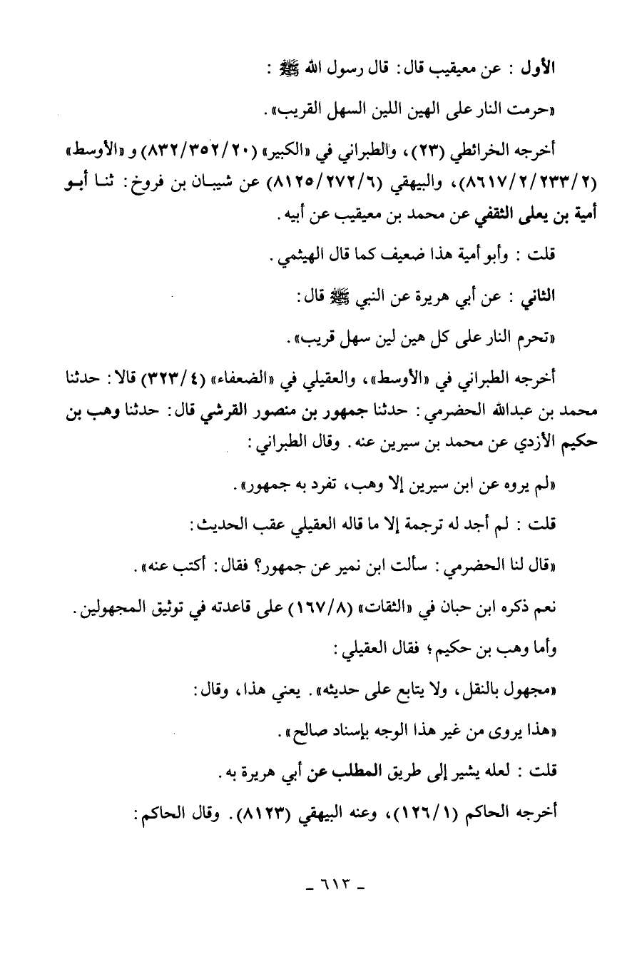 الله عليه وسلم: " حرمت النار على الهين اللين السهل القريب ".
