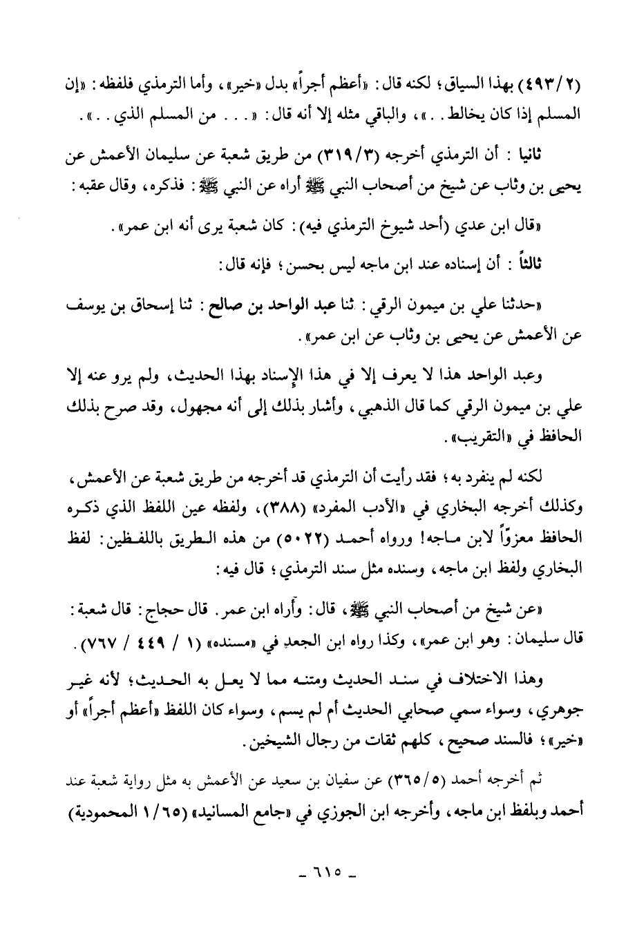 " خير " وأما الترمذي فلفظه " إن المسلم إذا كان يخالط ... " والباقي مثله