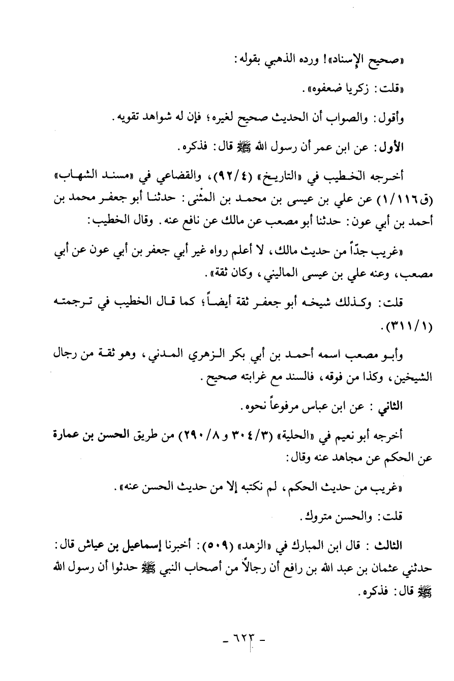 حدثنا أبو مصعب عن مالك عن نافع عنه. وقال الخطيب: " غريب جدا من حديث مالك