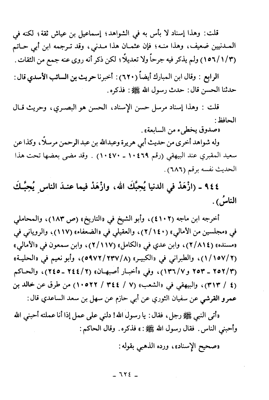 944 - " ازهد في الدنيا يحبك الله وازهد فيما عند الناس يحبك الناس ".