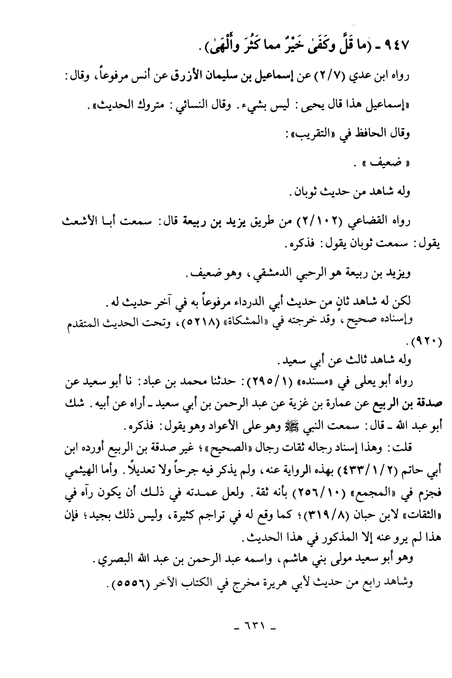 947 - " ما قل وكفى خير مما كثر وألهى ".