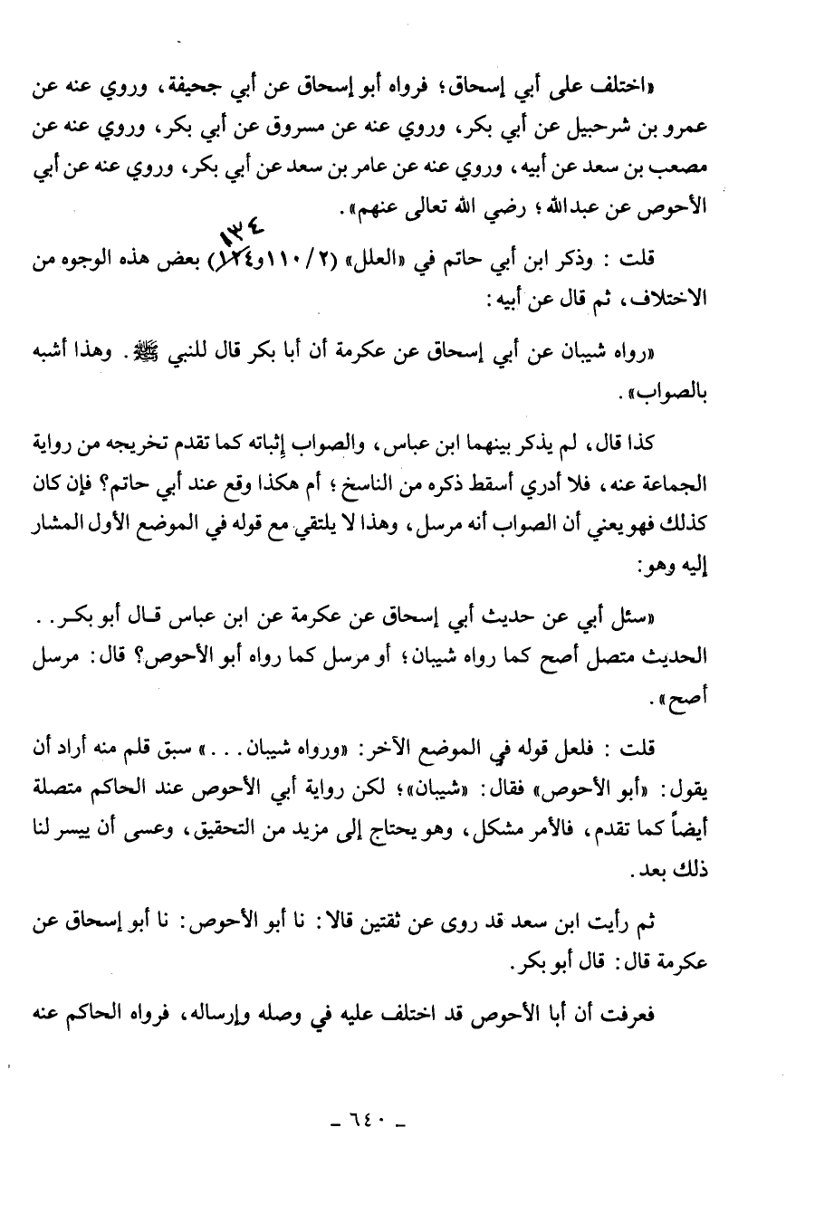 إسحاق عن عكرمة قال: قال أبو بكر. فعرفت أن أبا الأحوص قد اختلف عليه في وصله
