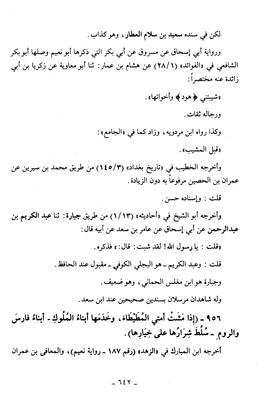 956 - " إذا مشت أمتي المطيطاء وخدمها أبناء الملوك أبناء فارس والروم سلط شرارها