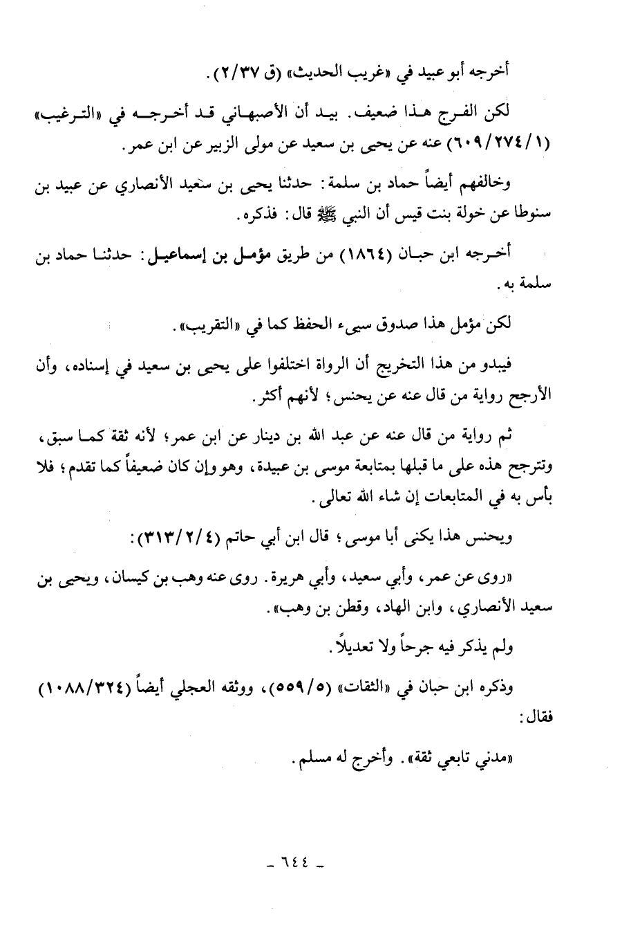 الفرج هذا ضعيف. وخالفهم أيضا حماد بن سلمة حدثنا يحيى بن سعيد الأنصاري عن