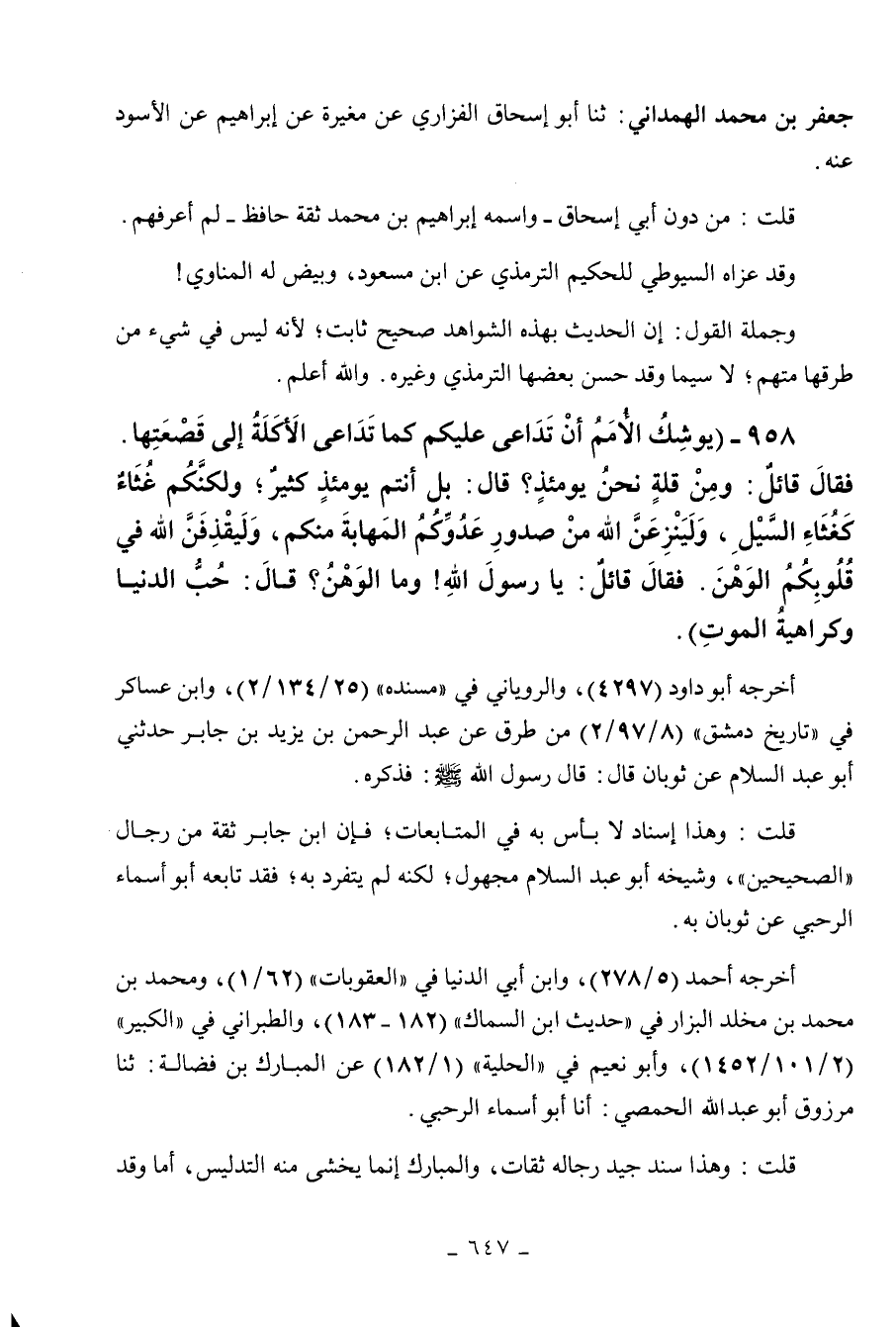 958 - " يوشك الأمم أن تداعى عليكم كما تدعى الأكلة إلى قصعتها، فقال قائل: ومن