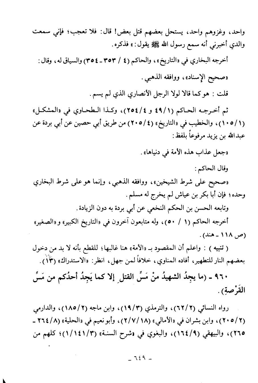 960 - " ما يجد الشهيد من مس القتل إلا كما يجد أحدكم من مس القرصة ".