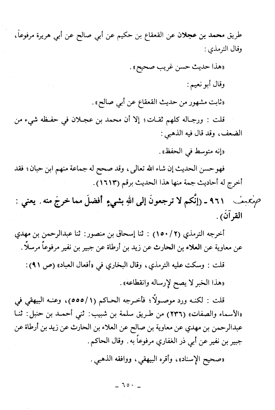 961 - " إنكم لا ترجعون إلى الله بشيء أفضل مما خرج منه. يعني القرآن ".