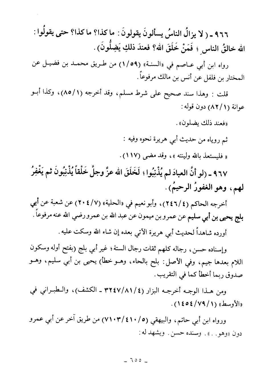 967 - " لو أن العباد لم يذنبوا لخلق الله عز وجل خلقا يذنبون، ثم يغفر لهم وهو