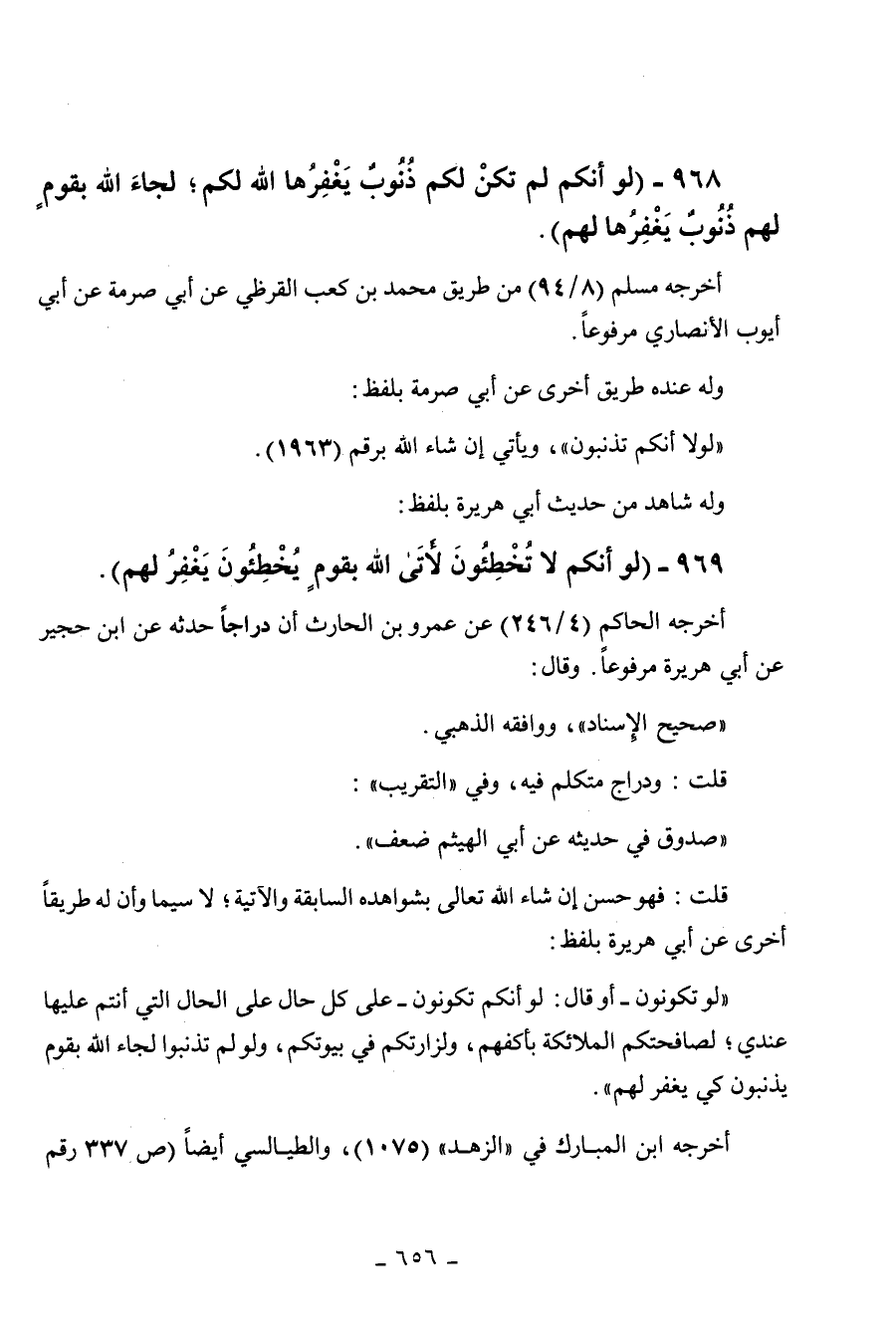 968 - " لو أنكم لم تكن لكم ذنوب يغفرها الله لكم لجاء الله بقوم لهم ذنوب يغفرها لهم