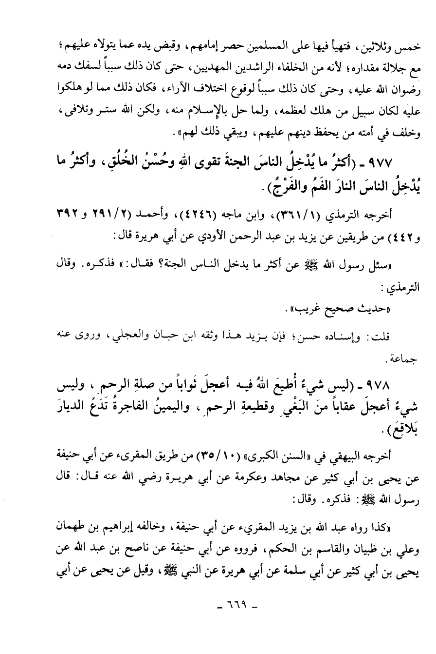 977 - " أكثر ما يدخل الناس الجنة تقوى الله وحسن الخلق وأكثر ما يدخل الناس النار