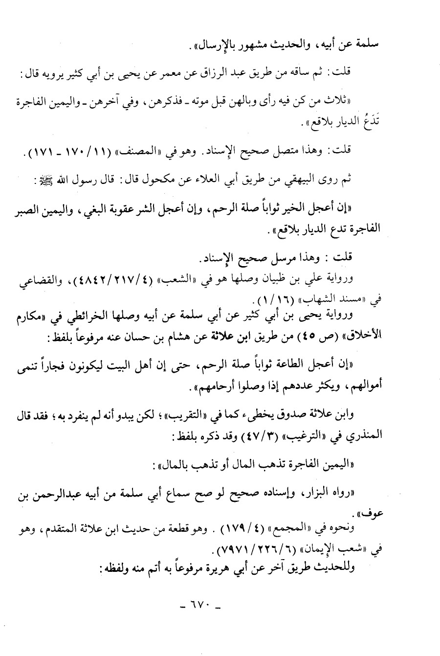 اليمين الفاجرة تذهب المال أو تذهب بالمال ": " رواه البزار وإسناده صحيح لو