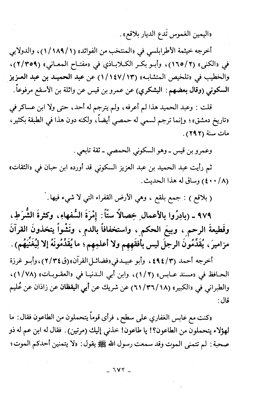 979 - " بادروا بالأعمال خصالا ستا: إمرة السفهاء وكثرة الشرط وقطيعة الرحم وبيع
