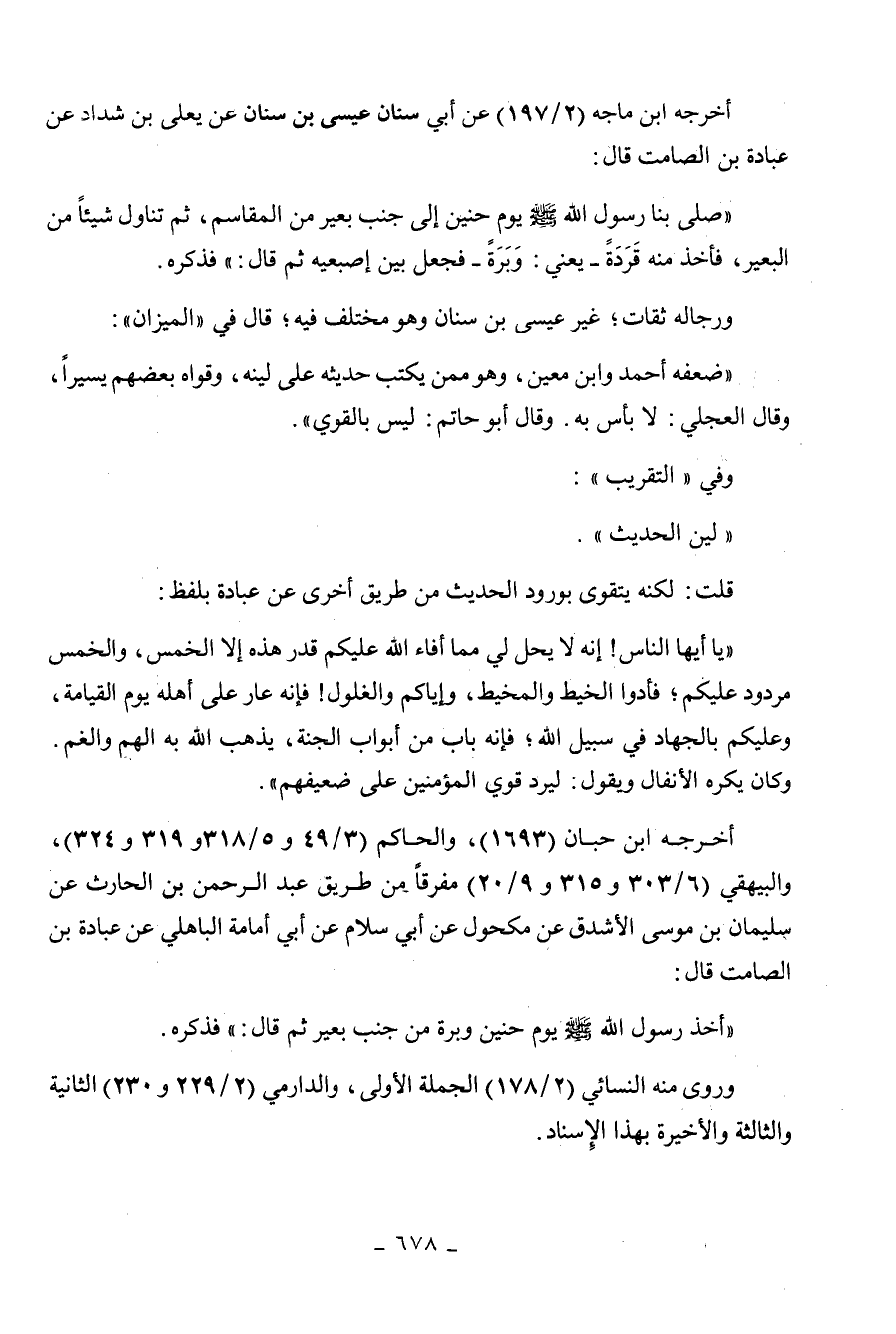 وسلم يوم حنين وبرة من جنب بعير ثم قال " فذكره. وروى منه النسائي (2 / 178