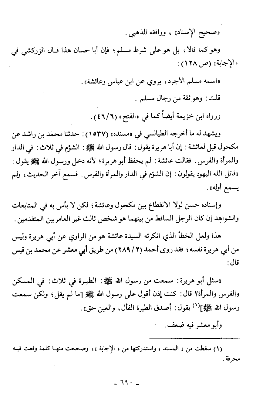 . هذا ولعل الخطأ الذي أنكرته السيدة عائشة هو من الراوي عن أبي هريرة، وليس
