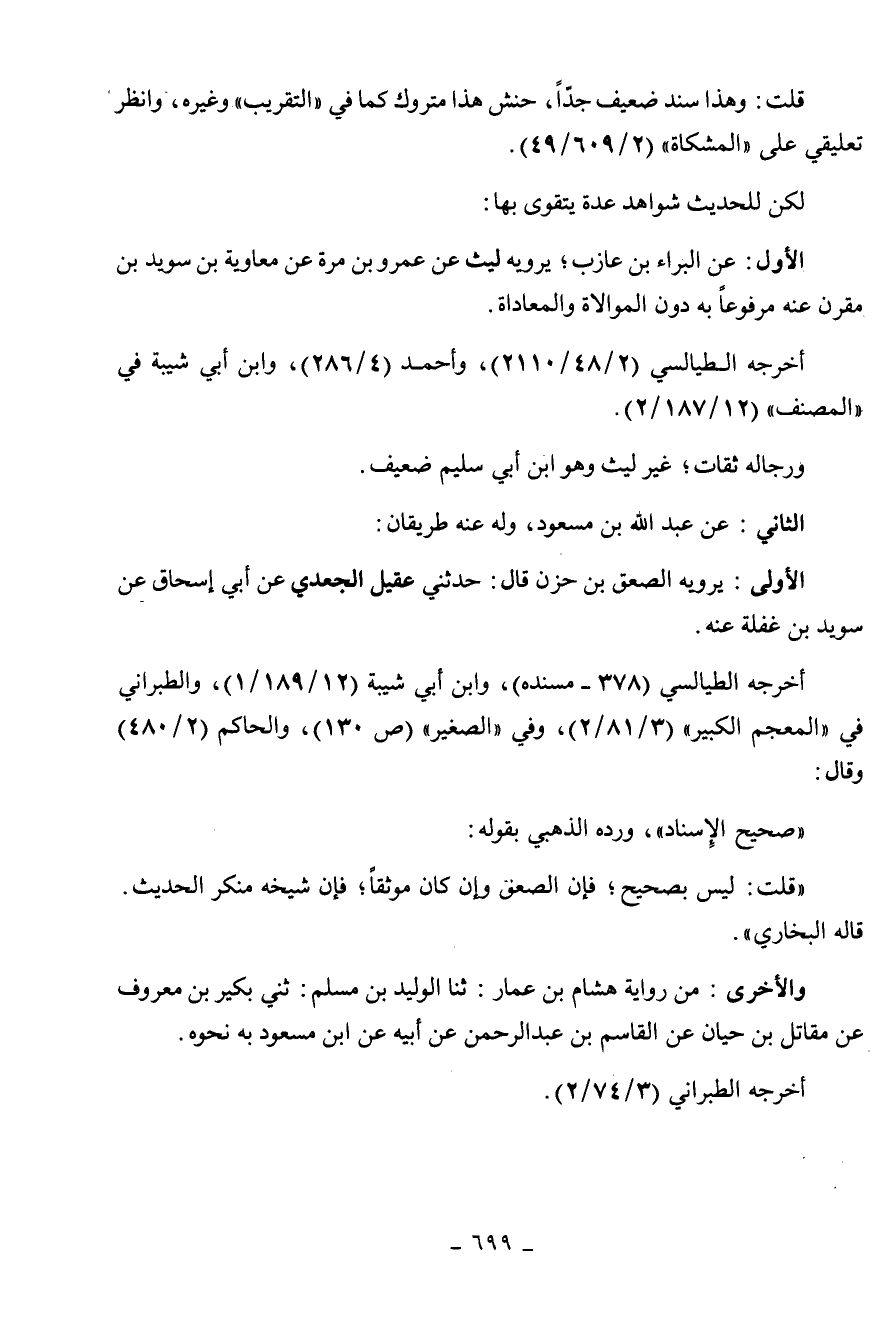 بن سويد بن مقرن عنه مرفوعا به دون الموالاة والمعاداة. أخرجه الطيالسي (2 /