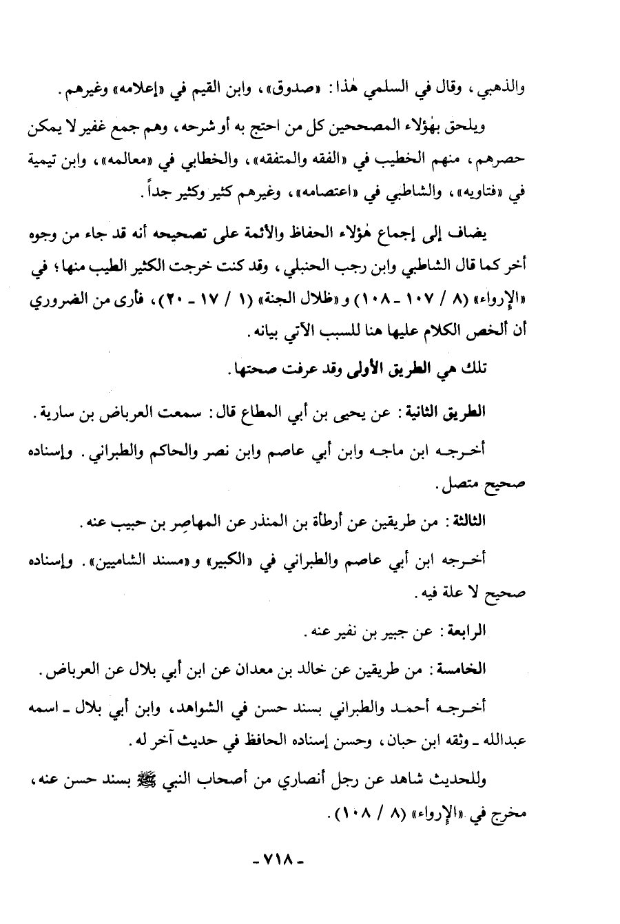 يضاف إلى إجماع هؤلاء الحفاظ والأئمة على تصحيحه أنه قد جاء من وجوه أخر كما قال الشاطبي وابن رجب الحنبلي، وقد كنت خرجت الكثير الطيب منها؛ في "الإرواء" (8/107-108) و"ظلال الجنة" (1/17-20) ، فأرى من الضروري أن ألخص الكلام عليها هنا للسبب الآتي بيانه.